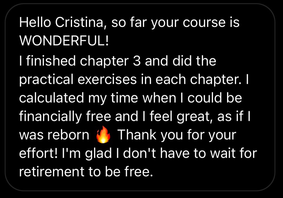 YES! You read that right. It's possible. And achievable :) It's called financial independence! I will present to you in the course All about money that makes money. Change the game! 8 steps to know everything you need to know to get there.